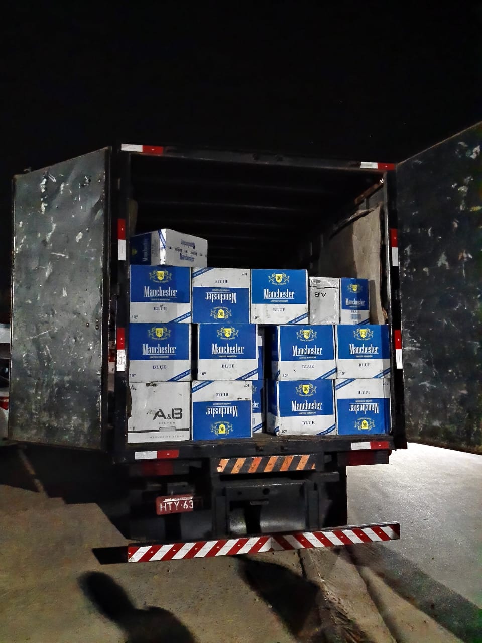 Foto: Imagem de parte da carga de cigarros contrabandeados.