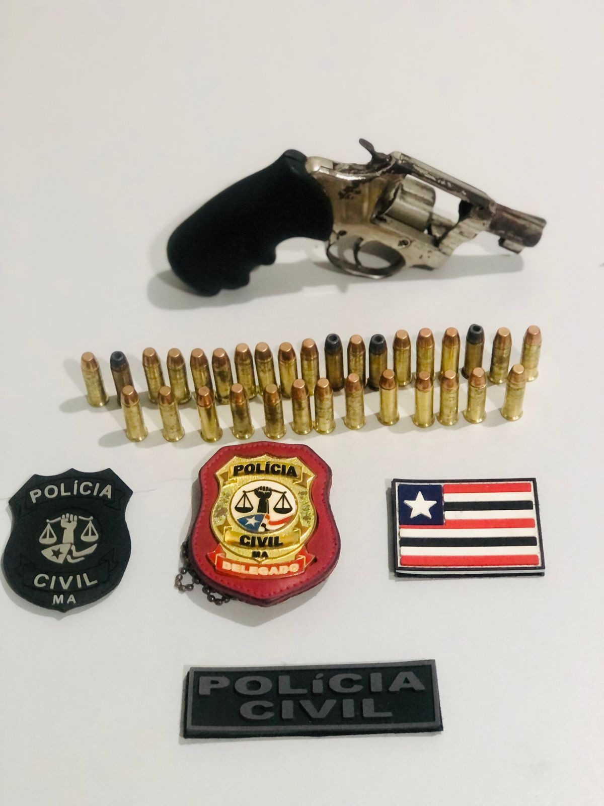Após diversas diligências investigativas, a equipe da delegacia de Polícia de Carutapera tomou conhecimento do paradeiro do investigado e, de pronto, saiu em missão para dar cumprimento ao mandado de prisão. No momento da prisão, o investigado estava em posse de uma arma de fogo (.38) e 32 munições, razão pela qual também foi lavrado auto de prisão em flagrante pelo crime de posse de arma de fogo de uso permitido.
