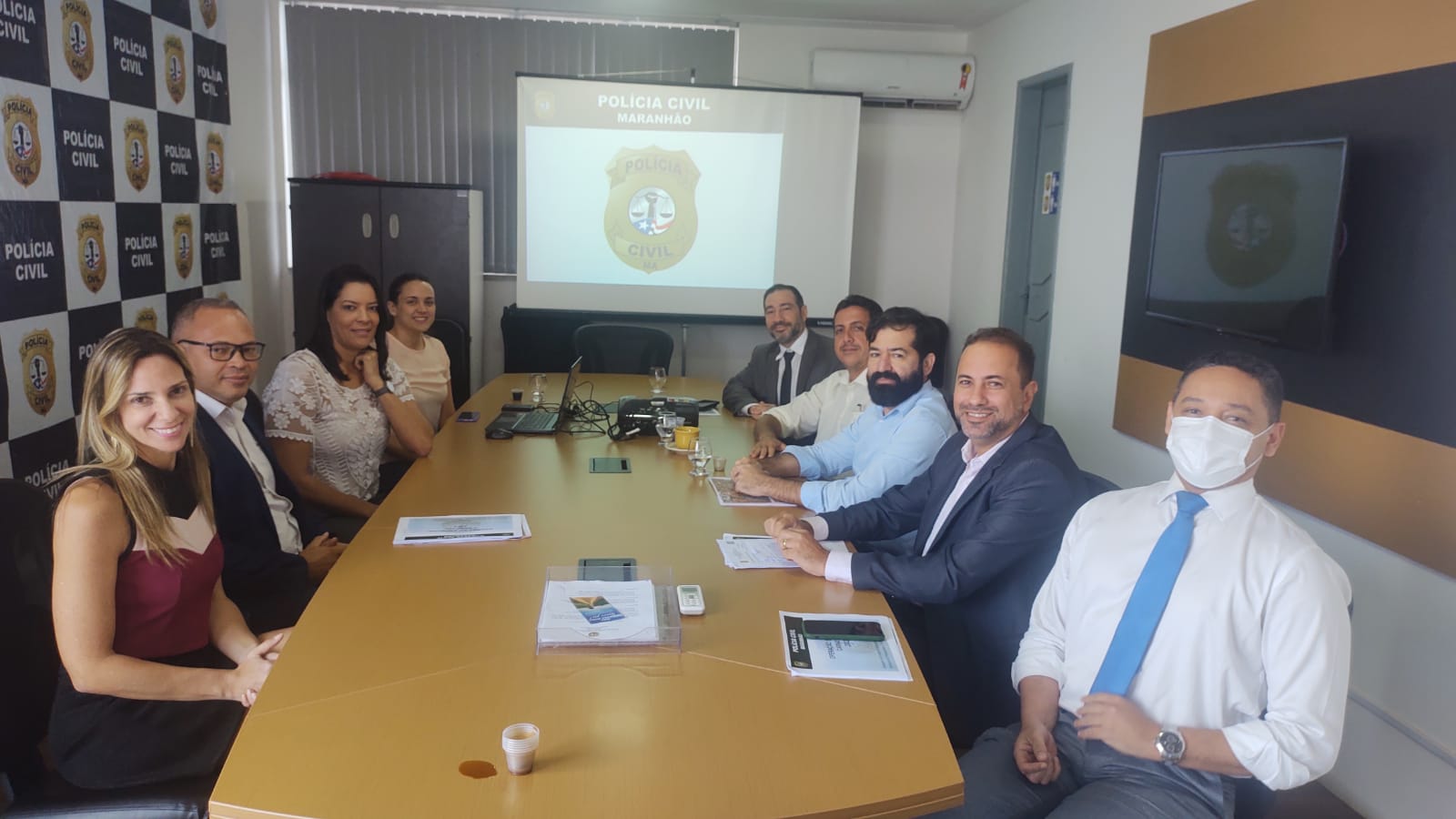 Foto: Imagem da reunião na sede da Delegacia Geral de Polícia Civil, em São Luís.