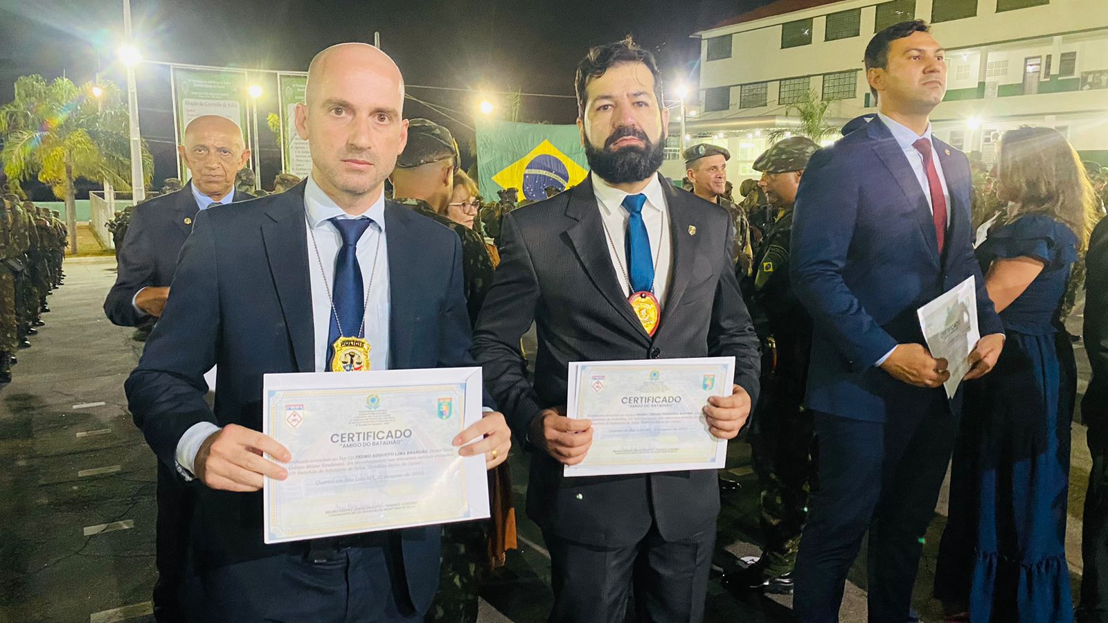 Na noite da última terça-feira (22), delegados da Polícia Civil do Maranhão (PCMA), receberam do 24 º Batalhão de Infantaria de Selva (24º BIS), o certificado “Amigo do Batalhão”. Na ocasião, o delegado Ederson Martins, chefe da Superintendência Estadual de Repressão ao Narcotráfico (SENARC) e o delegado Diego Ricardo Schiavini, chefe do Departamento da Capital (SENARC), foram diplomados na cerimônia realizada no quartel do batalhão, em São Luís.