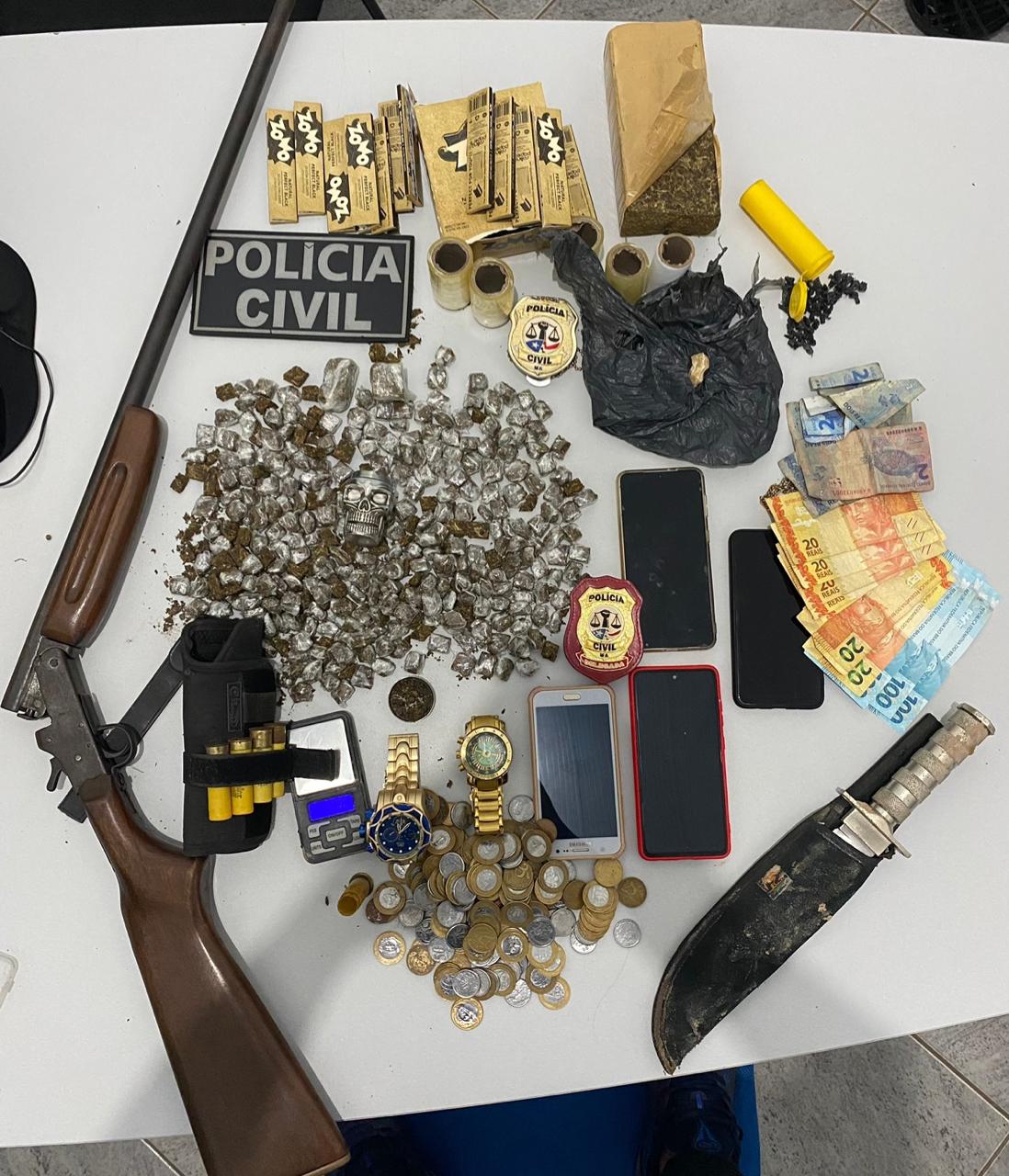 Segundo o 1º Distrito Policial de Cururupu, na residência alvo da ação policial, os investigadores conseguiram apreender 41 unidades de pedras de crack embaladas; 304 unidades pequenas embaladas de maconha; uma balança; 40 pacotes de papel seda; uma espingarda artesanal nº 20; com quatro cartuchos de nº20; 05 tubos de papel filme e o valor de 1.400 reais em dinheiro.