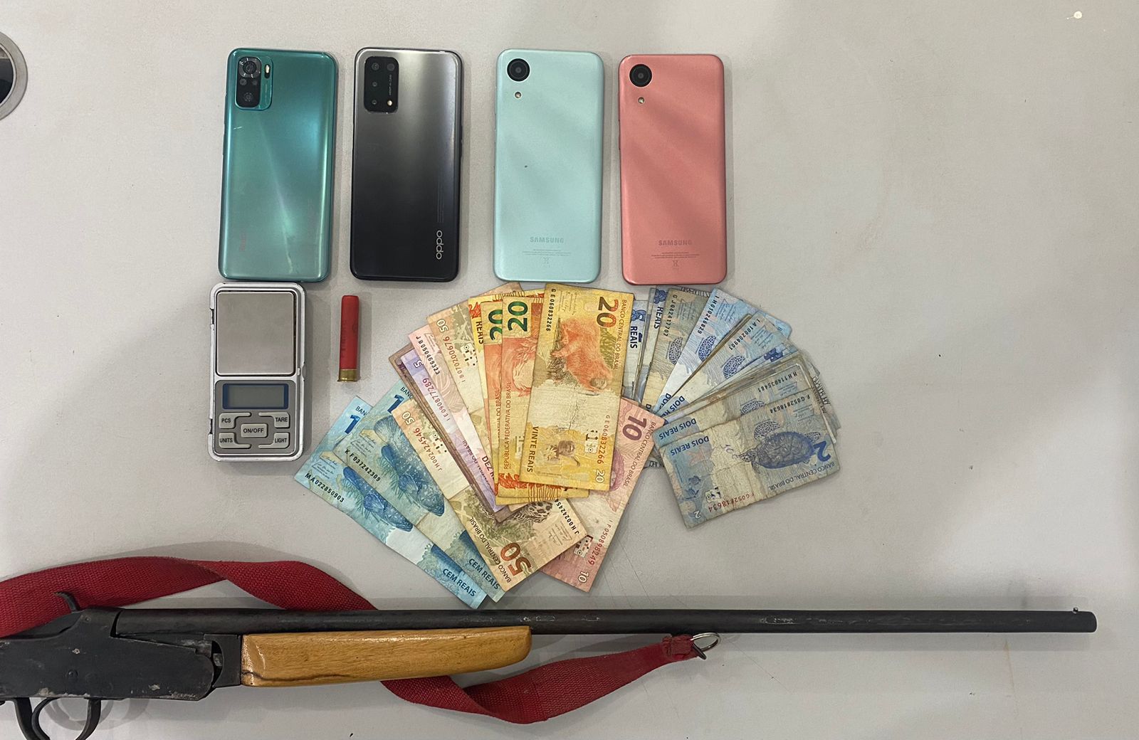Além disso foram encontrados na residência do suspeito, uma balança de precisão no valor de R$ 530,00 reais e 04 aparelhos celulares que não possuíam documentação de compra. Questionado sobre a procedência dos aparelhos, o homem informou que 02 dos aparelhos foram comprados de usuários de drogas, um pelo valor de R$ 150,00 reais e outro pelo valor de R$ 250,00 reais e os outros 02 aparelhos, foram comprados no “Feirão do Face” do Facebook.