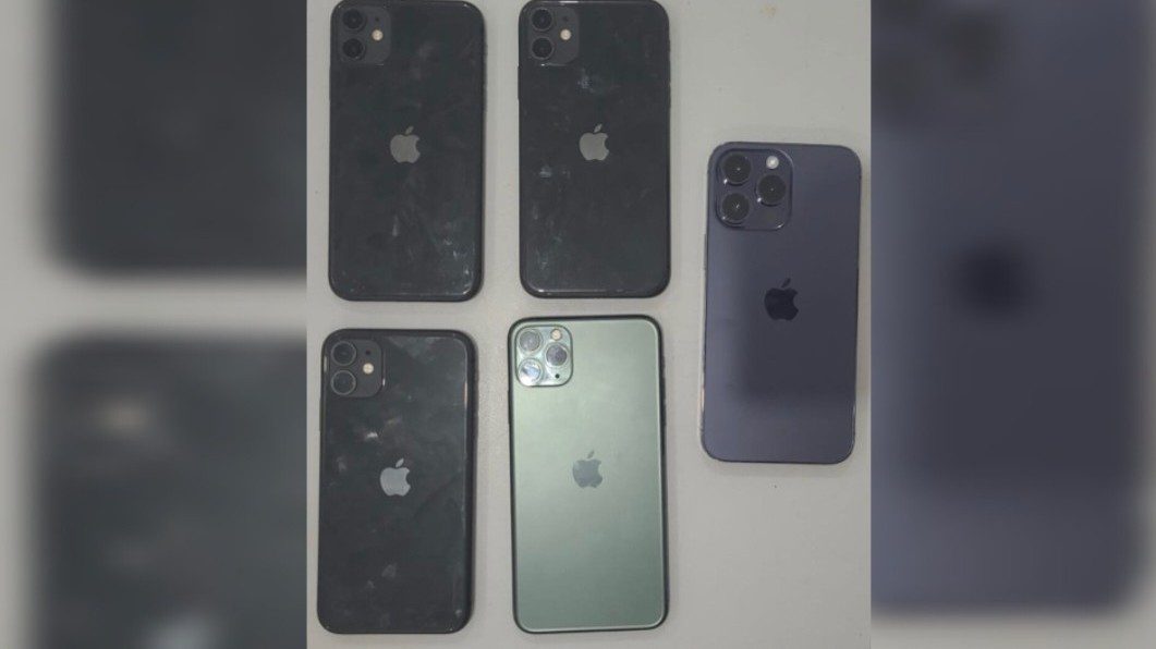 Foto: Imagem de parte dos aparelhos celulares recuperados.