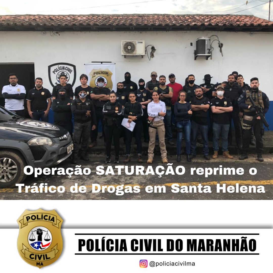 A Polícia Civil do Maranhão, deflagrou, hoje (11), a OPERAÇÃO SATURAÇÃO com objetivo de reprimir o tráfico de drogas em Santa Helena, onde cumpriu nove Mandados de Busca e Apreensão.