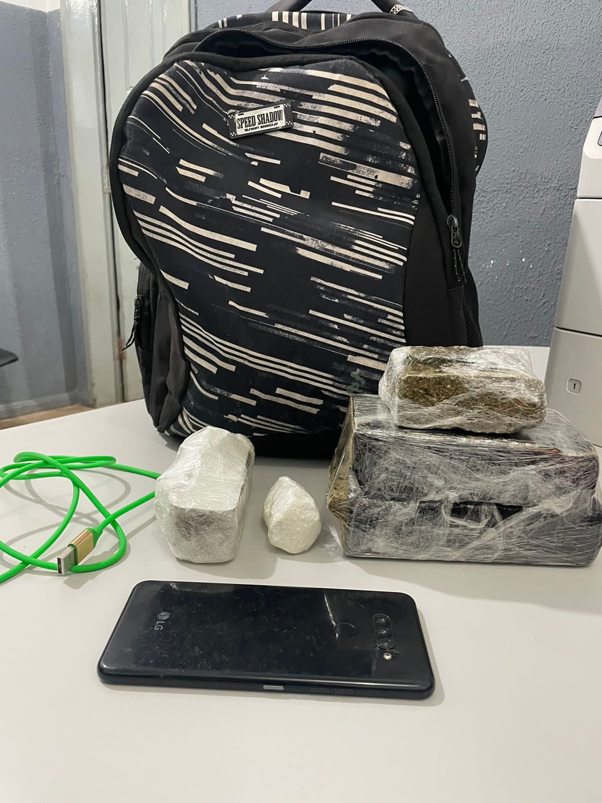 Na quarta, a equipe de investigação realizou uma abordagem de rotina em uma van que passava pela BR-010, na região do bairro Itamar Guará. Na vistoria foi encontrada uma mochila que continha material sólido embalado em saco plástico preto. Os demais passageiros apontaram o dono da mochila que assumiu a sua propriedade bem como informou que receberia o pagamento de 800 reais pelo serviço prestado.