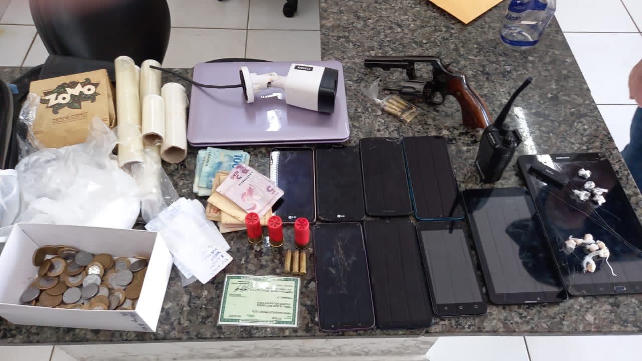 Durante a operação, os policiais apreenderam armas de fogo e munições, drogas (maconha, cocaína e crack), cultivo de droga (pé de maconha), dinheiro, rádios de comunicação, bens receptados e vários bens relacionados ao acondicionamento de entorpecentes.