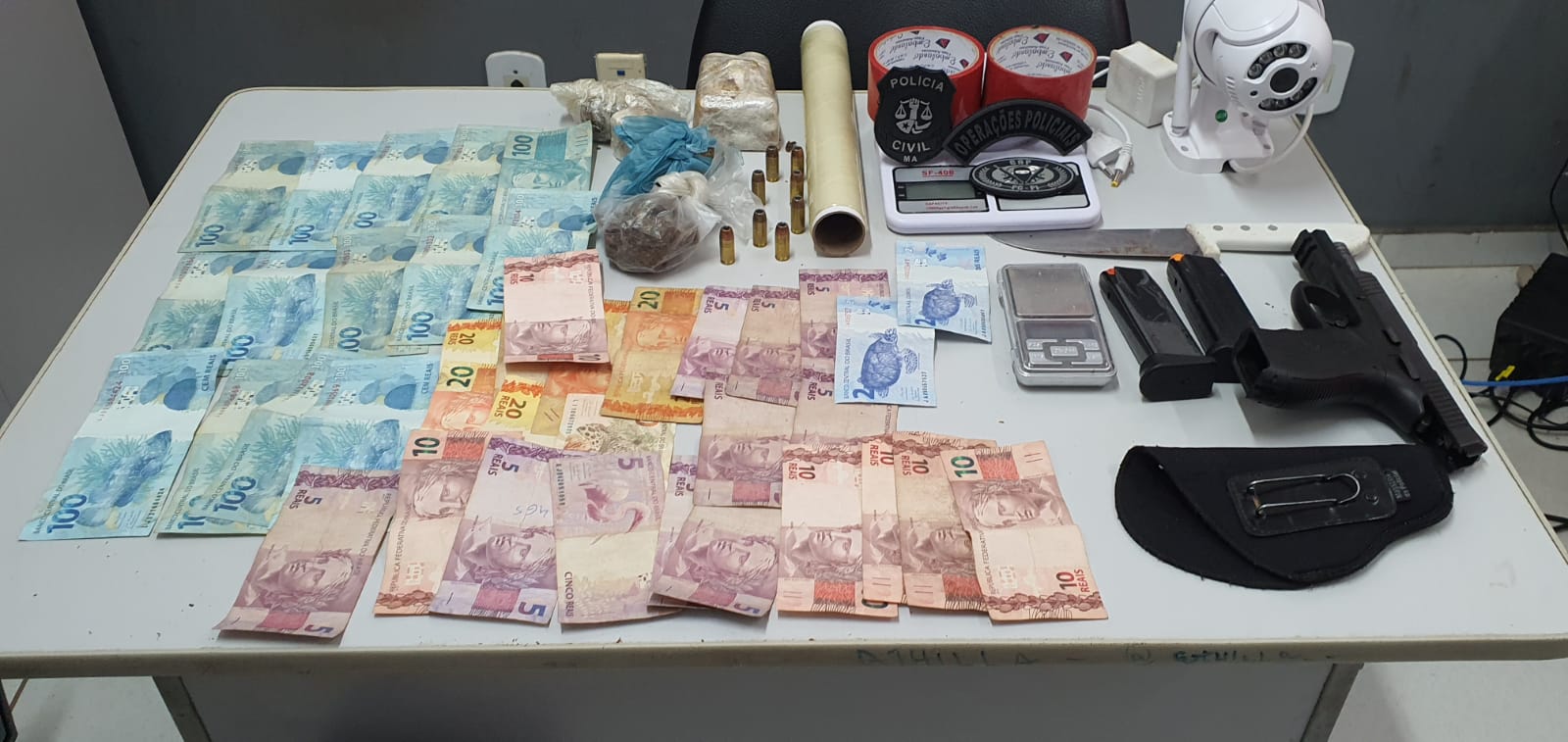 Na tarde da última quinta-feira(26), um trabalho realizado pela Polícia Civil do Maranhão resultou, no cumprimento de dois mandados de prisão preventiva e na prisão em flagrante de um homem, pelos crimes de tráfico de drogas e posse ilegal de arma de fogo, além ser suspeito de integrar uma facção criminosa atuante na cidade de Coroatá.