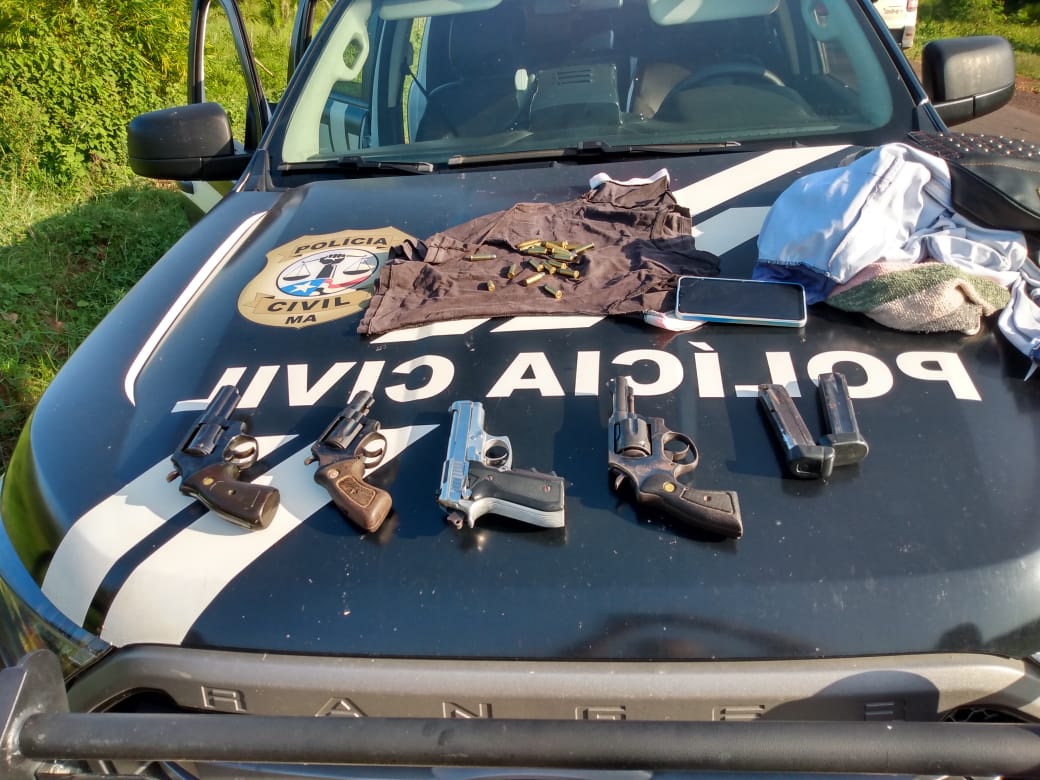 Durante o trabalho de vistoria no interior do veículo, os policiais civis encontraram quatro armas de fogo sendo, uma pistola calibre 380 e três revólveres calibre 38 e várias munições. O homem estava acompanhado com outras pessoas, entre elas, menores de idade.