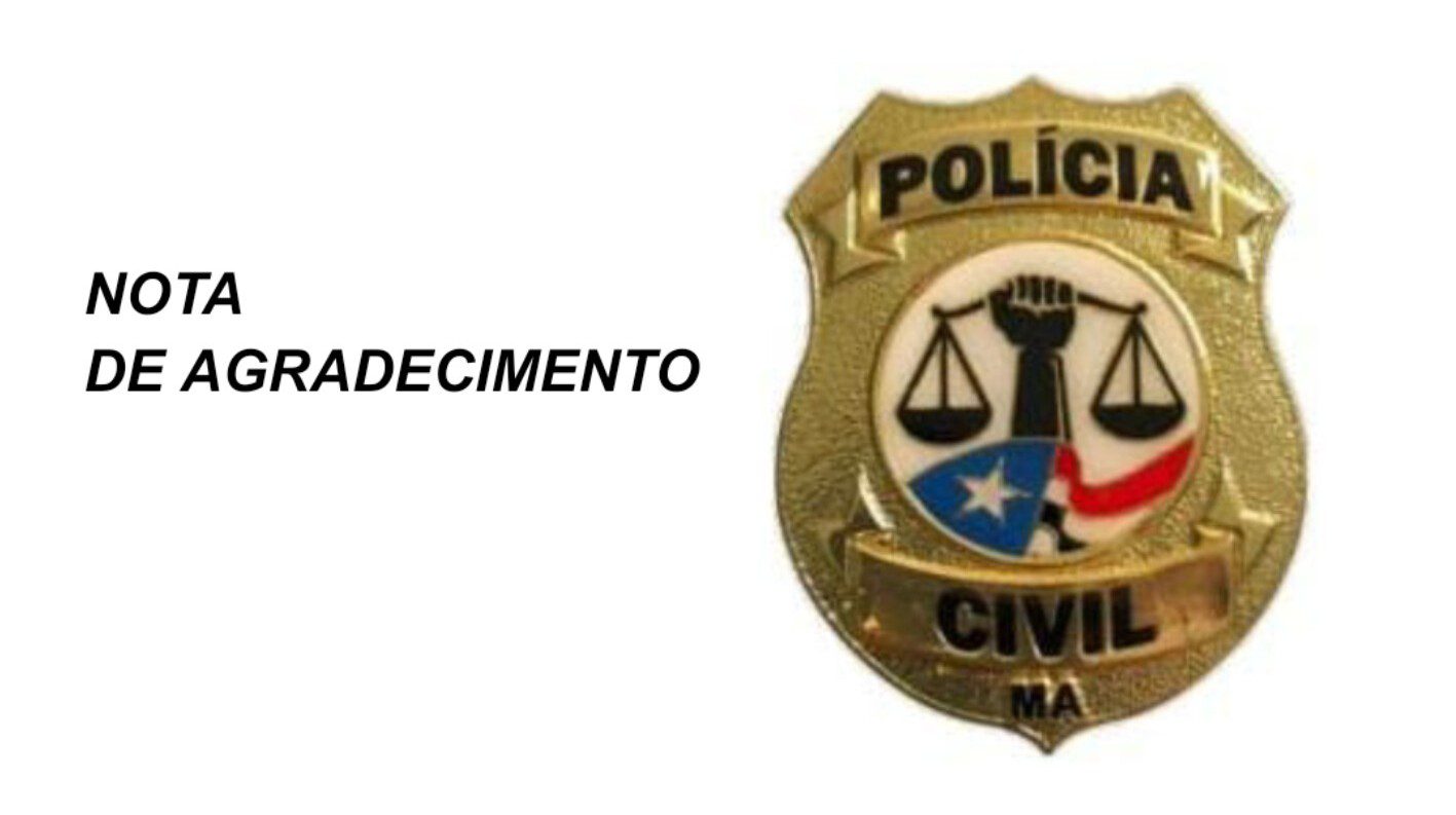 A Polícia Civil do Maranhão(PC-MA), por meio da Delegacia Geral de Polícia, vem externar sua gratidão à Secretaria de Estado da Segurança Pública, à Polícia Militar do Maranhão, ao Corpo de Bombeiros do Maranhão, ao Centro Tático Aéreo(CTA),à Secretaria Municipal de Segurança e Cidadania, à Perícia Oficial do Maranhão, à Secretaria Municipal Trânsito e Transportes, e principalmente a todo efetivo policial civil presente , pelo apoio dado na cerimônia e honras fúnebres do investigador de Polícia Civil, Daniel Sales de Sousa.