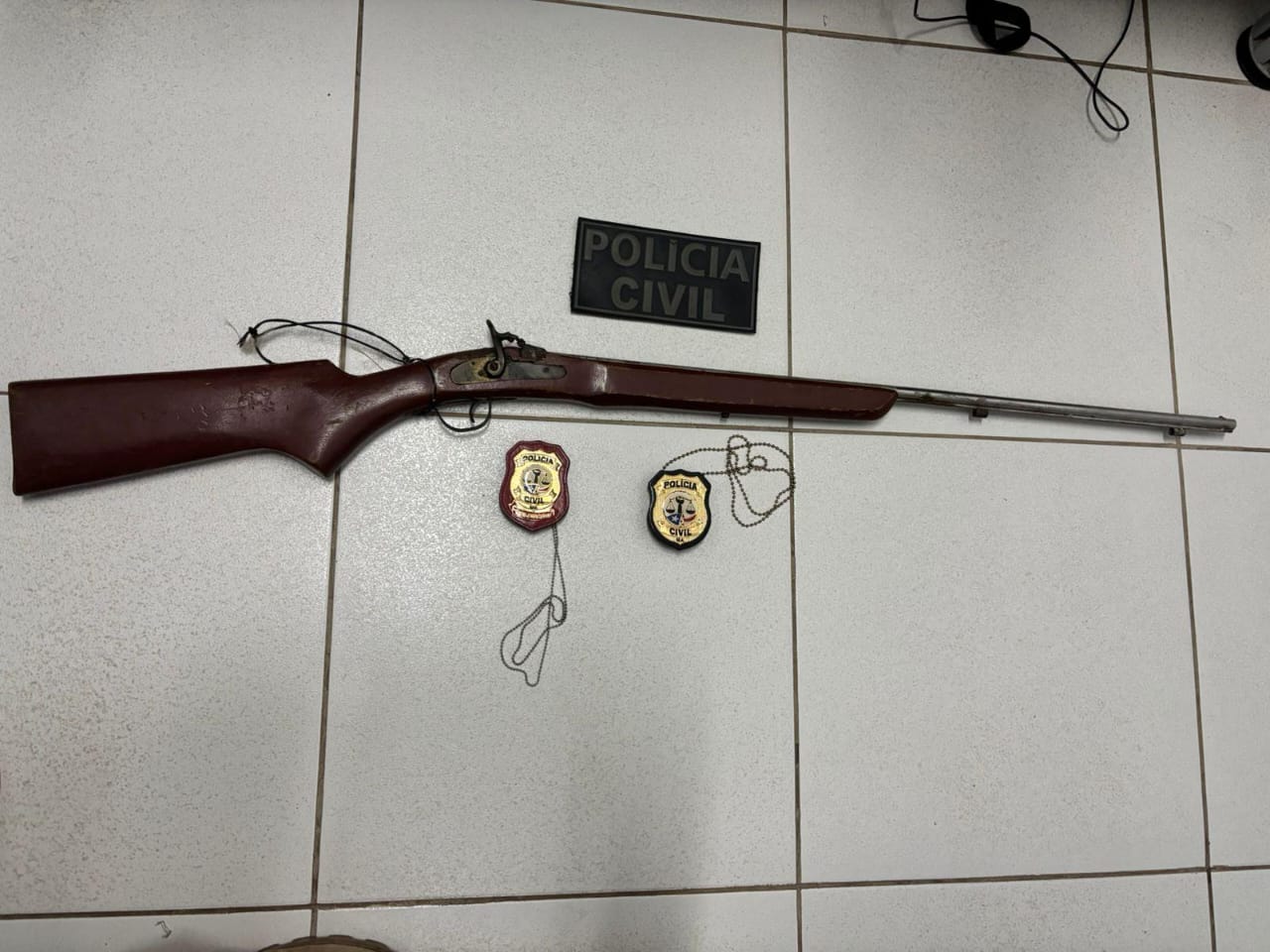No decorrer das investigações, equipes da Polícia Civil se deslocaram até o referido povoado, onde localizaram o suspeito em posse da arma de fogo utilizada no crime, circunstância que ensejou sua prisão em flagrante, bem como a apreensão do armamento.