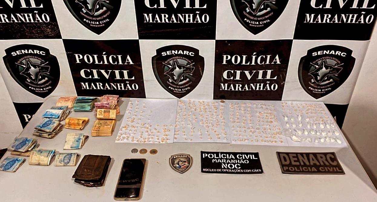 Durante o cumprimento dos mandados expedidos pela 2ª Vara de Criminal de Timon, policiais civis conseguiram prender duas pessoas investigadas pelos crimes de tráfico de drogas. Na ocasião, a polícia ainda apreendeu, entorpecentes dos tipos “cocaína”, “crack” e “maconha”, além de apetrechos oriundos do tráfico, bem como mais de 5 mil reais em dinheiro. Um dos suspeitos recebeu voz de prisão preventiva também, pelo crime de tráfico de drogas decorrente de uma investigação realizada pela Denarc.