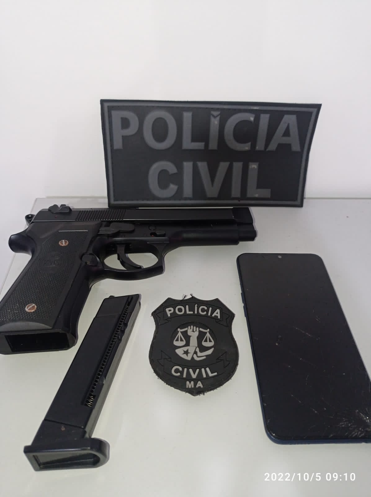 Um dos suspeitos foi preso em sua residência no bairro Vila Embratel. As investigações apontam seu envolvimento em um roubo a residência ocorrido no dia 09 de agosto desse ano, no mesmo bairro. Na ocasião, o suspeito juntamente com mais 03 comparsas, todos armados, subtraíram vários bens do local, e ainda obrigaram as vítimas a realizarem transferências de valores via Pix. Com o preso os policiais apreenderam um simulacro de arma de fogo.