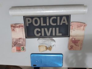 Já identificados, os policiais civis apreenderam na casa do casal, uma substancia semelhante ao crack, material de embalagem, celular e uma quantia em dinheiro trocado no quarto dos suspeitos.
