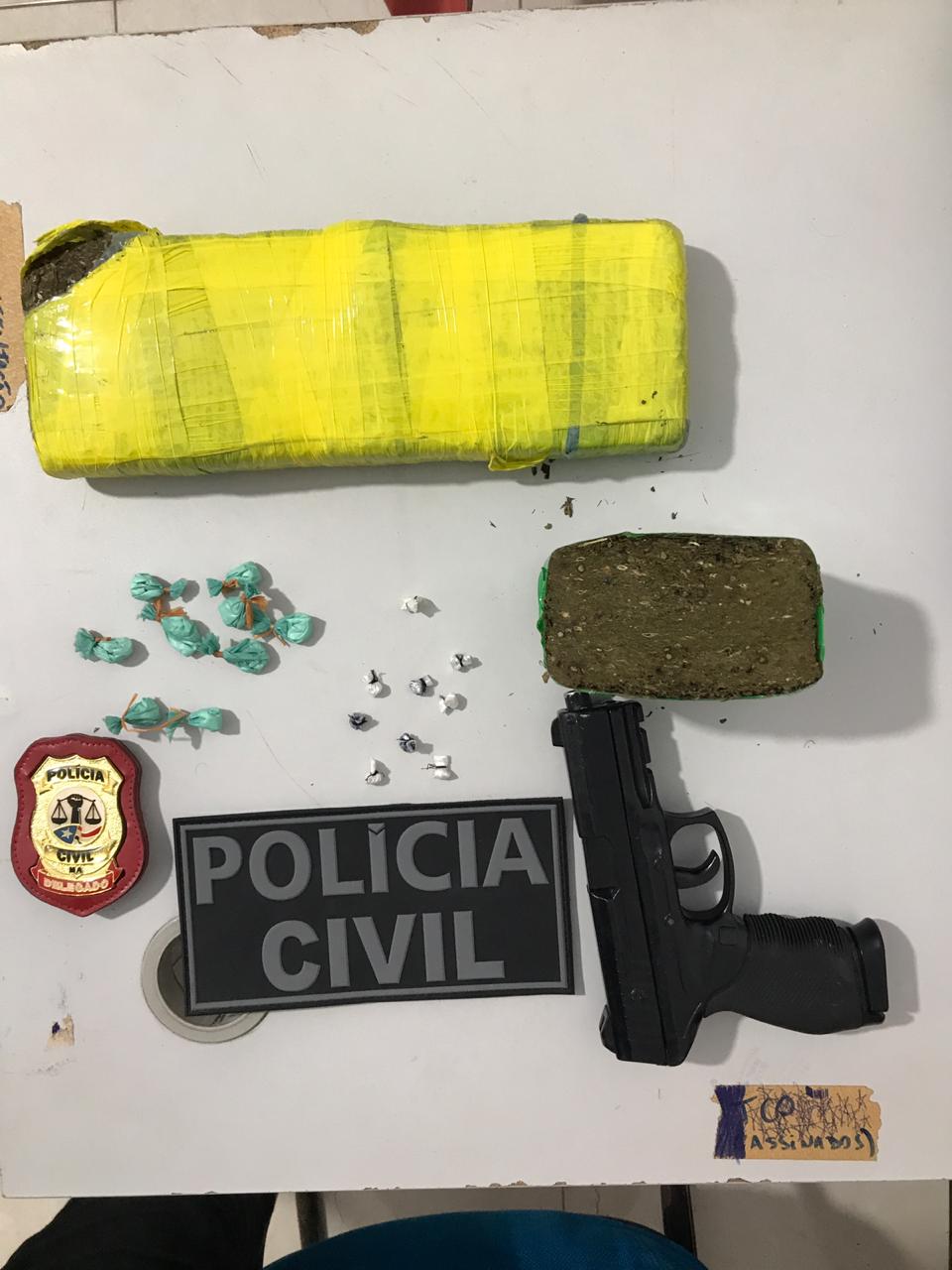 No início da manhã, por volta das 6h, após receber informes que havia 2(dois) nacionais com grande quantidade de drogas no Bairro Santa Rita, o delegado de Carutapera, com apoio operacional da Polícia Militar e Guarda Municipal, diligenciou até o endereço informado e apreendeu um tablete e meio de substância vegetal semelhante a Maconha; nove papelotes de Cocaína; nove “petecas” de Crack, além de um simulacro de pistola na cor preta.