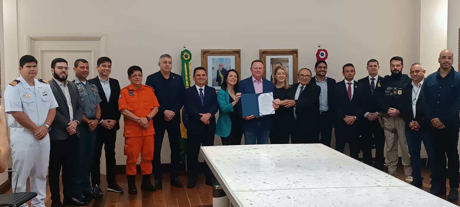 O ato de assinatura contou com a presença do governador do Estado, Carlos Brandão; do secretário de Estado da Segurança Pública, Mauricio Martins; o comandante-geral do Corpo de Bombeiros do Maranhão, Cel. Célio Roberto; o subchefe do Estado Maior Geral da Polícia Militar do Maranhão, Cel. Nilson Marques, além de representantes de órgãos estaduais e federais.