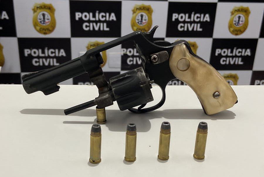 Uma equipe de policiais civis realizavam diligências no intuito de investigar um crime de homicídio ocorrido na cidade, momento este em que abordou o investigado que portava uma arma de fogo do tipo revólver, calibre 32.