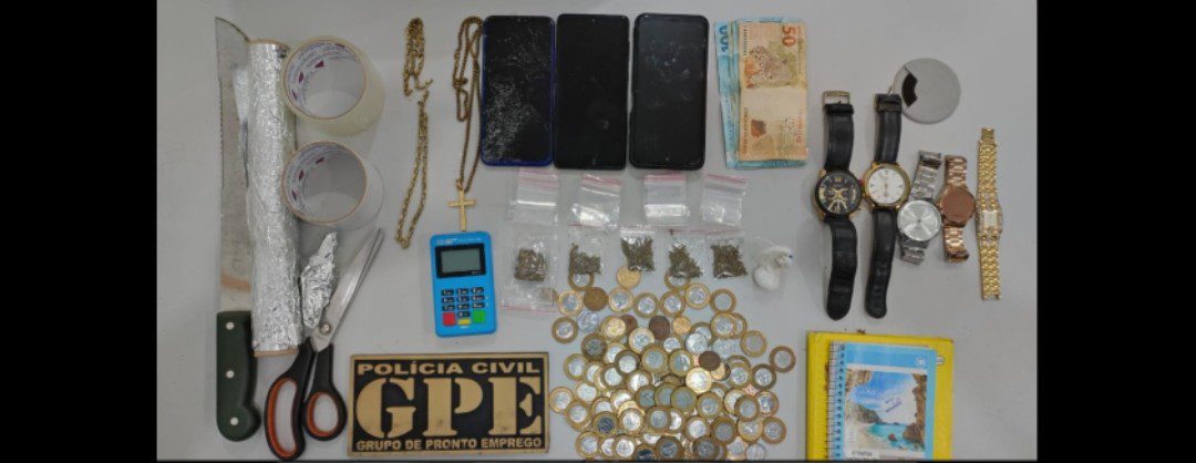 Segundo a 10ª Delegacia Regional de Imperatriz, durante o cumprimento ao mandado de busca e apreensão na residência do autuado, a equipe do Grupo de Pronto Emprego (GPE), localizou certa quantidade de maconha e cocaína, diversos papelotes que são utilizados para a embalagem e venda de entorpecentes, além de certa quantidade de dinheiro trocado.