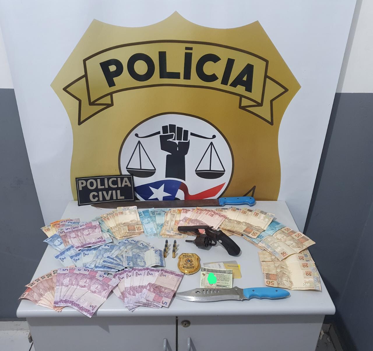 De acordo com o delegado Samuel Morita, a vítima procurou a delegacia relatando essas ameaças e violências que sofria e, com base nas informações prestadas pela mulher, foi possível montar uma operação policial que logrou êxito na apreensão das armas utilizadas na prática desses delitos e consequente prisão em flagrante do agressor, bem como na apreensão da arma de fogo e valores em espécie que foram encontrados com o autuado.