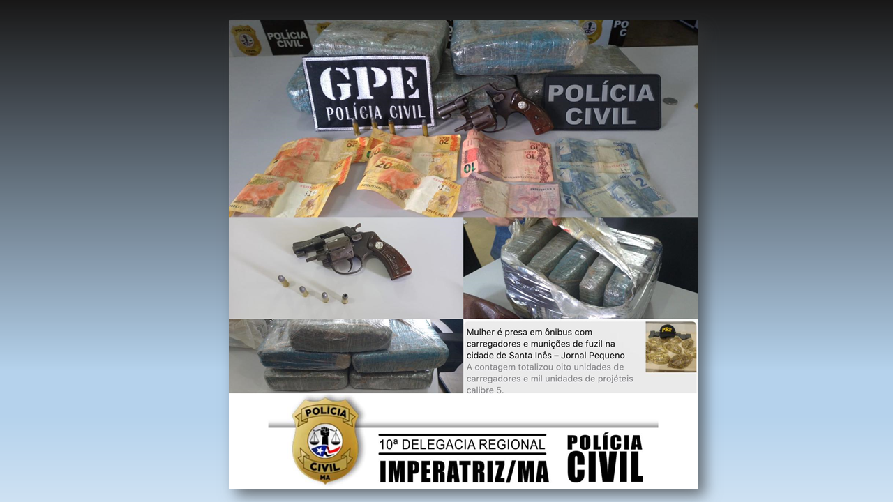 Essa mesma mulher já havia sido presa na Cidade de Santa Inês no dia 11.03.2020, transportando oito carregadores e mil munições de fuzil calibre.556, mas foi colocada em liberdade provisória, após decisão judicial, no dia 06.04.2020 sem tornozeleira eletrônica.