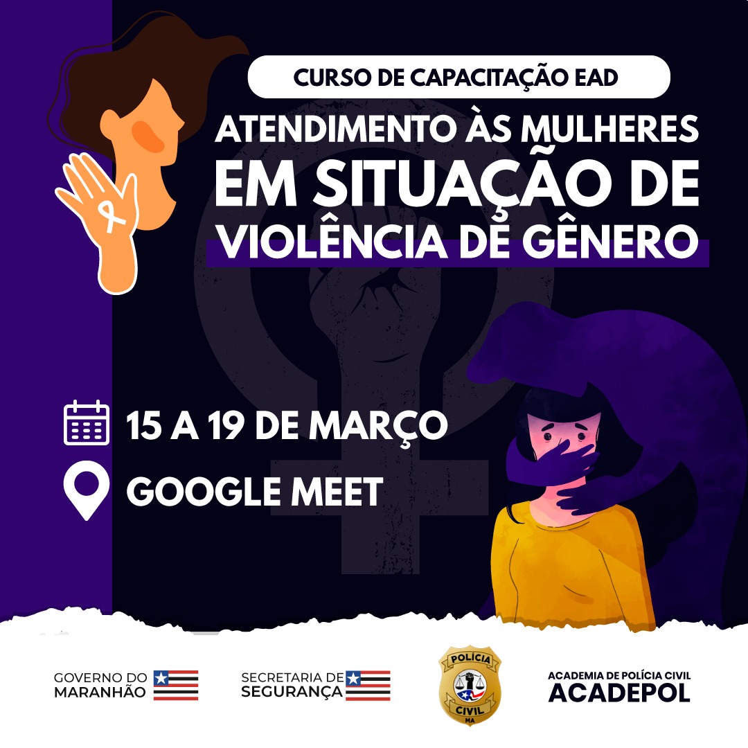 A Polícia Civil do Maranhão (PCMA) encerra, nesta sexta-feira (19), o Curso de Atendimento às Mulheres em Situação de Violência de Gênero, ministrado, desde segunda-feira (15), pela internet, a 100 agentes de segurança pública, entre policiais civis, militares e bombeiros do Maranhão.
