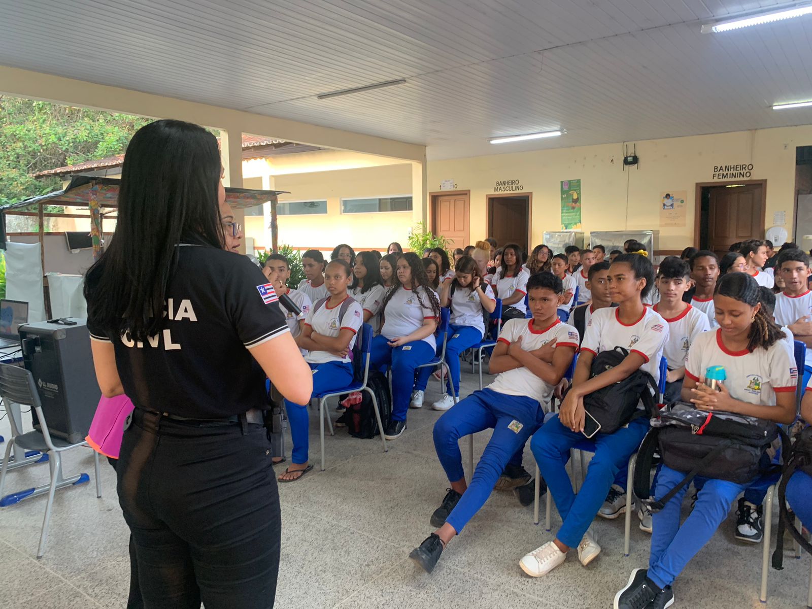A ação educativa, ministrada pela delegada Wanda Moura, chefe do Departamento de Feminicídio da Polícia Civil do Maranhão, teve o objetivo de conscientizar os estudantes e professores sobre relacionamentos abusivos e mecanismos de combate à violência contra a mulher, a exemplo, os canais de denúncias.