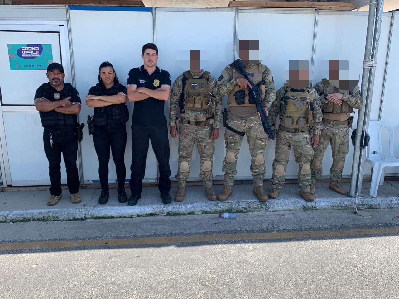Imagem das equipes policiais no pré-carnaval da Avenida Beira-Mar.