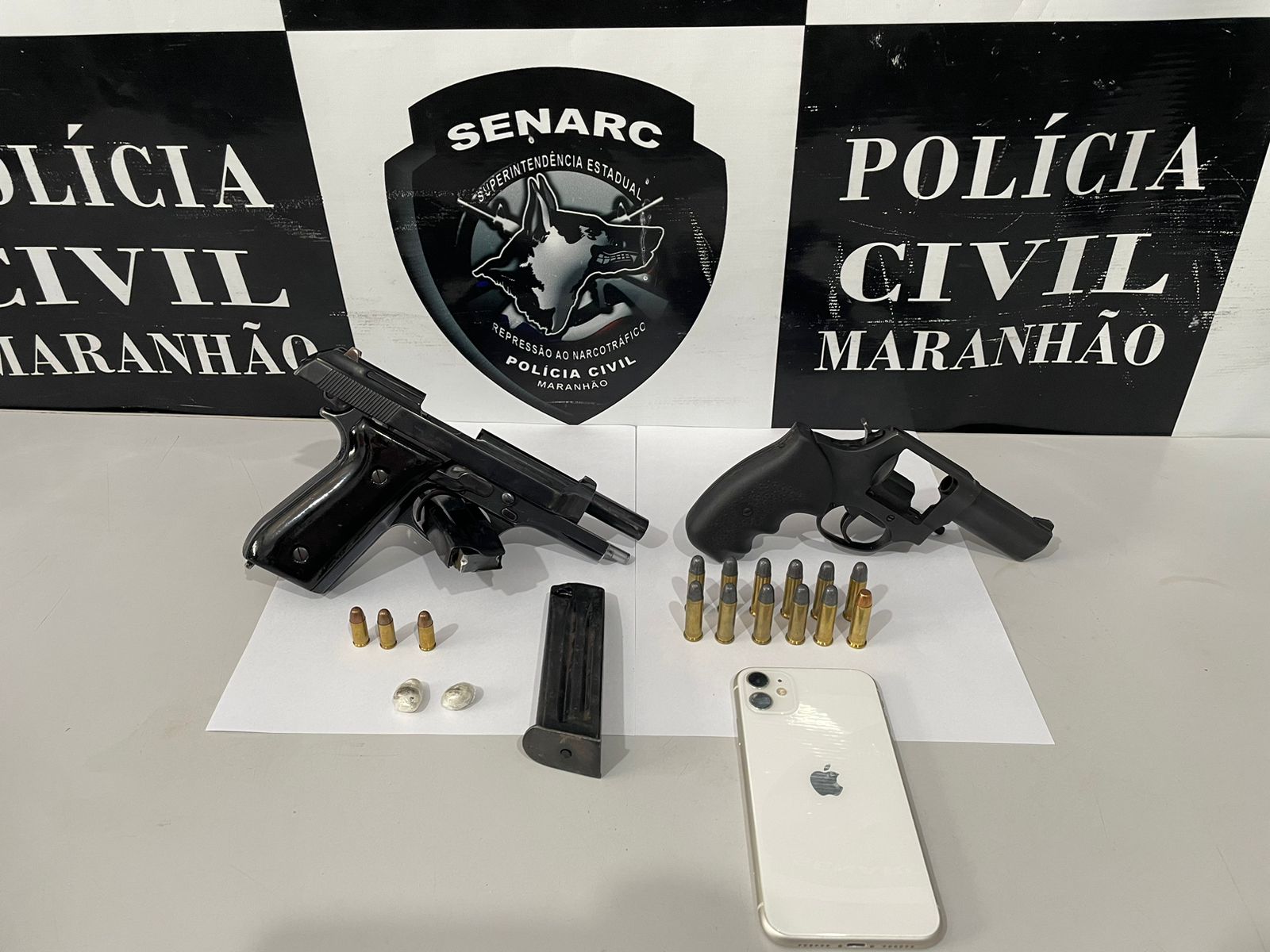 Ainda de acordo com as informações, durante as diligência, a Polícia Civil conseguiu com êxito apreender 02 armas de fogo, sendo uma pistola de calibre .765, com 02 carregadores e 03 munições e um revólver, de calibre 38, com 12 munições do mesmo calibre. Além disso, foi localizada também, uma certa quantidade de entorpecentes do tipo maconha.