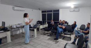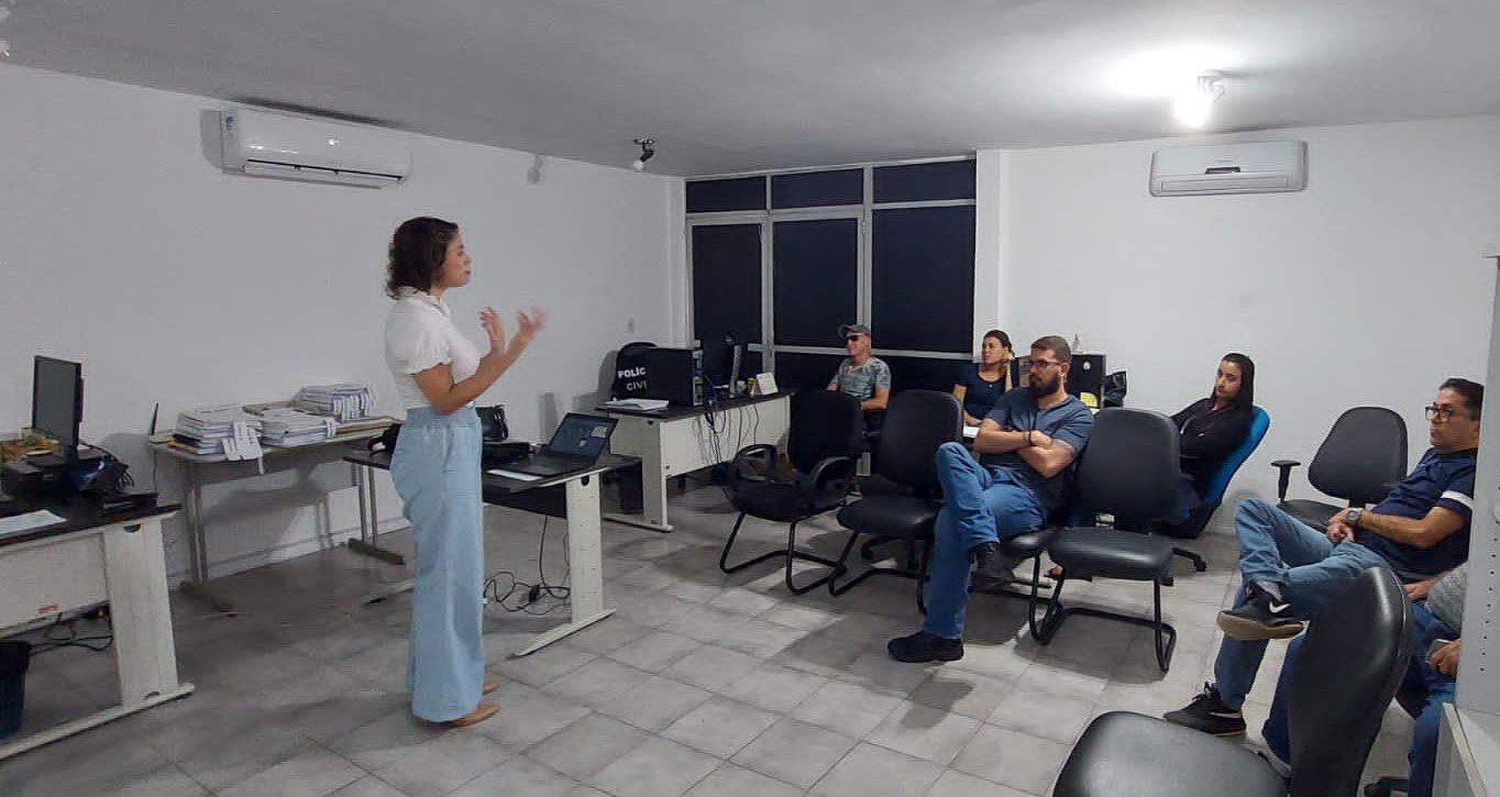 Foto: Imagem da palestra ministrada na Delegacia Geral de Polícia Civil.