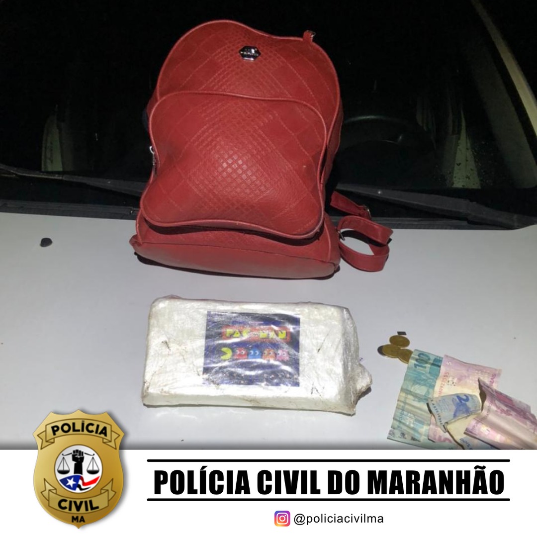 A Polícia Civil do Maranhão realizou a prisão em flagrante, na madrugada de hoje (24), de uma mulher que transportava 1KG de cocaína, droga esta que seria vendida no município de Pinheiro/MA, e está avaliada em, aproximadamente, 30 mil reais. Ação da Superintendência Estadual de Repressão ao Narcotráfico (Senarc), em conjunto com a Delegacia de Polícia Civil de São Bento/MA.
