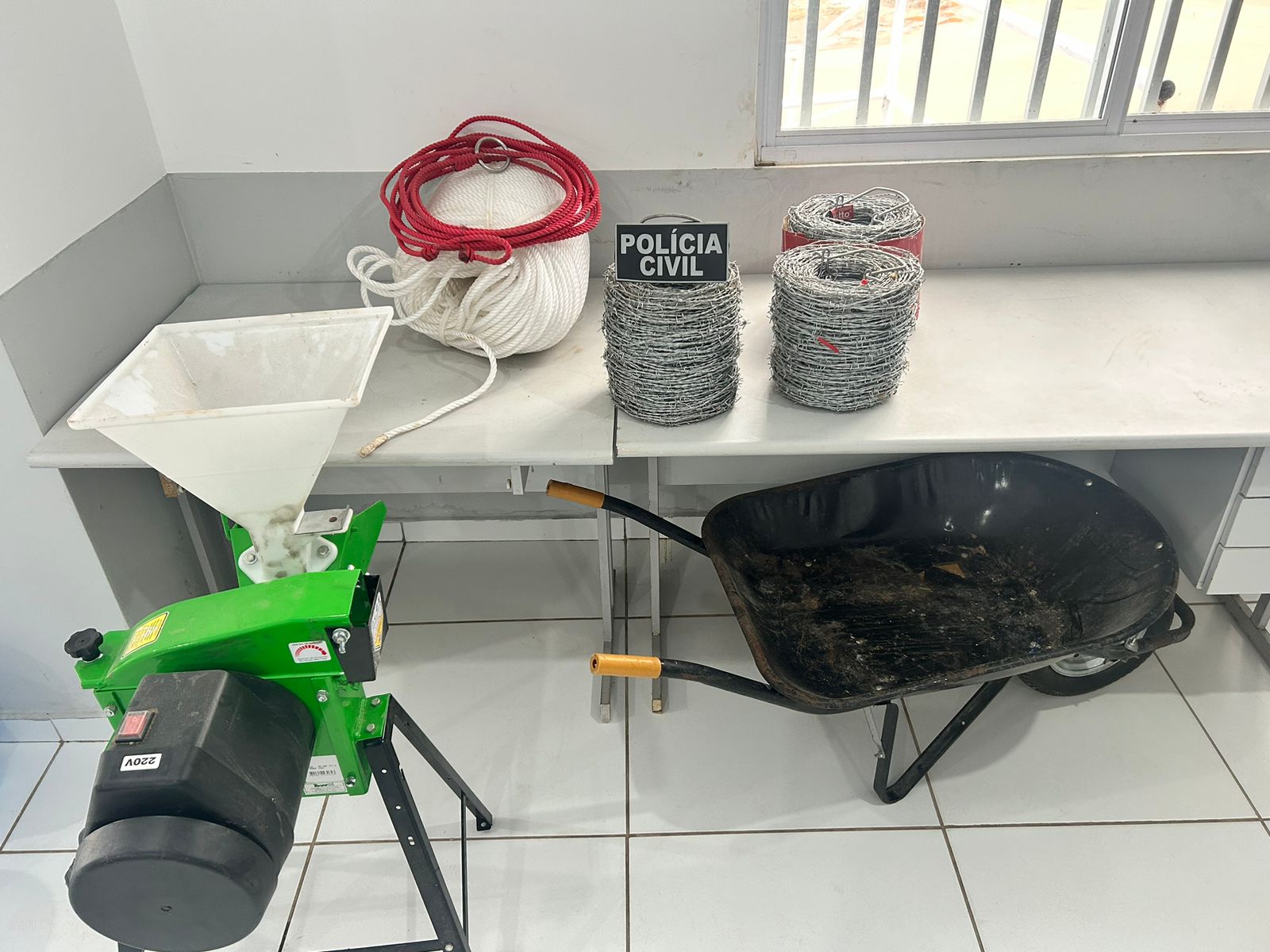 O delegado Allan Bruno, titular da Delegacia de Polícia de Bequimão, informou que o homem teria furtado, um triturador, dois rolos de arame farpados, dois rolos de cordas e um carro de mão.