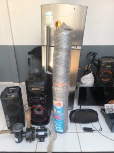 No local, os policiais civis encontraram diversos objetos de origem ilícita, entre eles televisores, aparelhos de som, bicicleta, geladeira, bombas de água, ferramentas e produtos de cosméticos, todos possivelmente provenientes dos furtos e roubos investigados.