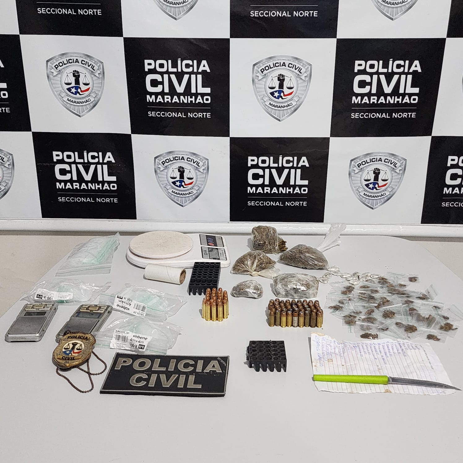 A Polícia Civil do Maranhão, através da Superintendência de Polícia Civil da Capital(SPCC), em uma ação realizada na tarde da última terça-feira(16), prendeu em flagrante um homem, de 33 anos, pelos crimes de tráfico de drogas e posse ilegal de munições na cidade de Paço do Lumiar, região Metropolitana de São Luís.