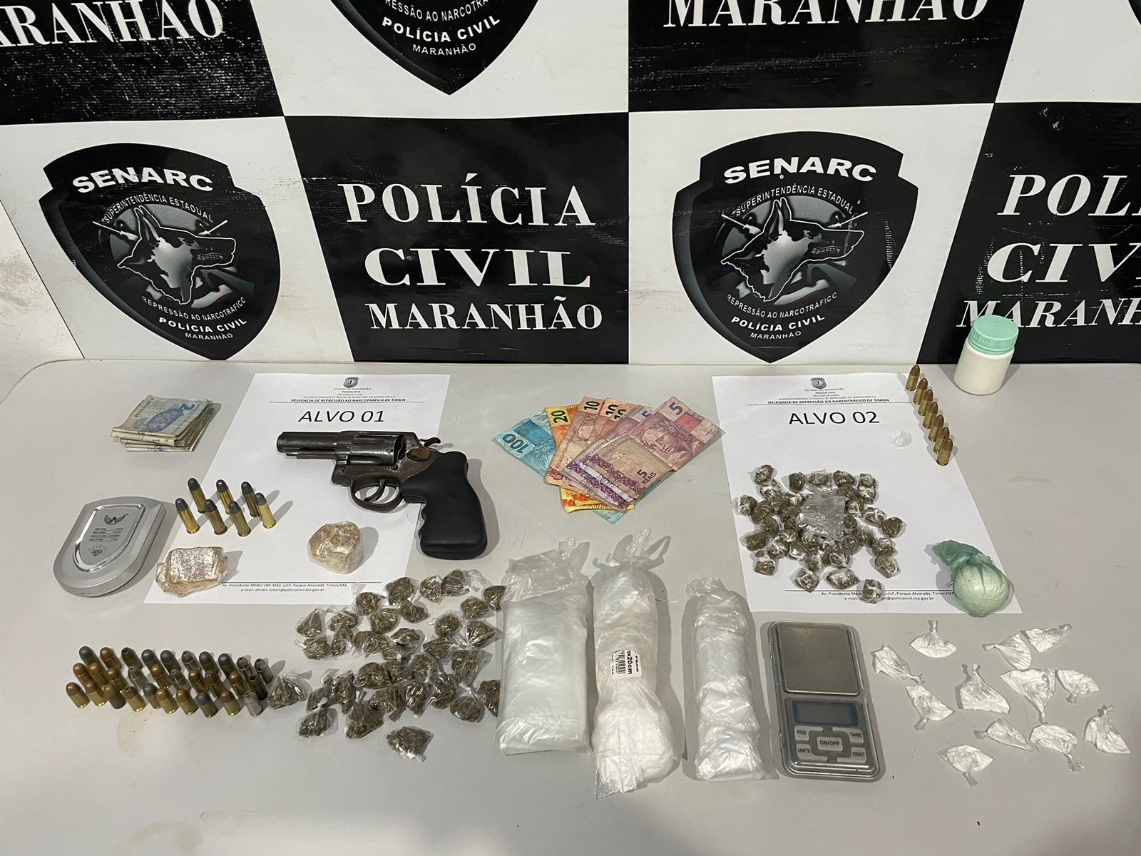 Em uma ação realizada nas primeiras horas da manhã desta quinta-feira(13), a Polícia Civil do Maranhão, por intermédio da Delegacia de Repressão aos Narcotráfico (DENARC) e a Delegacia de Homicídios e de Proteção à Pessoa(DHPP) de Timon, conseguiram, cumprir três mandados de busca e apreensão e prendeu duas pessoas em flagrante pelos crimes de tráfico e posse ilegal de arma de fogo no município de Timon.