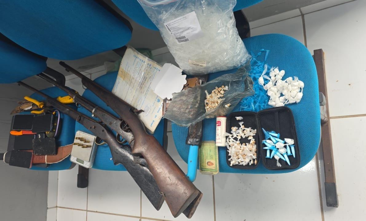 Durante o cumprimento dos mandados judiciais, os agentes de segurança apreenderam armas de fogo, munições, aparelhos celulares, além de uma quantidade expressiva de entorpecentes prontos para comercialização, entre eles cocaína e crack.